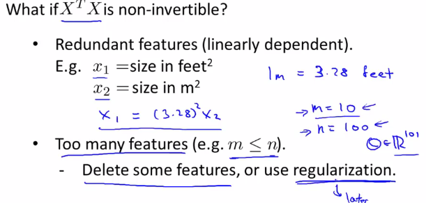 正规方程的不可逆性 Normal Equation Noninvertibility