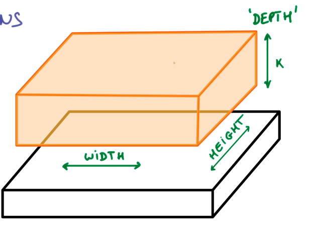 在不改变权重的情况下,把这个上方具有k个输出的小神经网络对应的小块滑遍整个图像,可以得到一个宽度、高度不同,而且深度也不同的新图像。